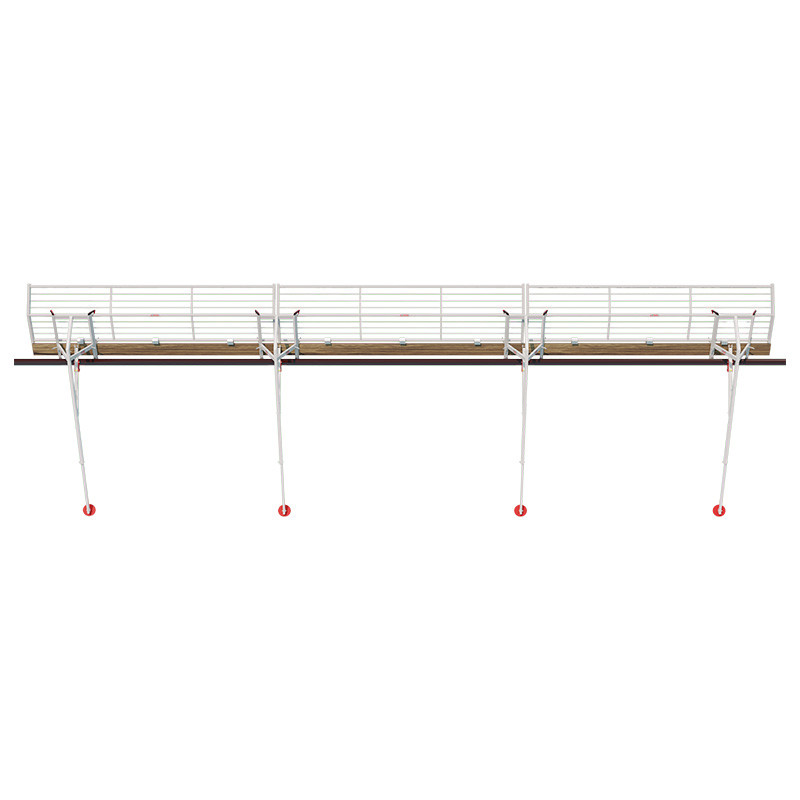 Das System besteht aus folgenden Teilen: Pfosten (Ständer), Gitter, Bordbrett (Fußleiste), Hakenbügel und der geforderten Sicherheitsfußplatten.