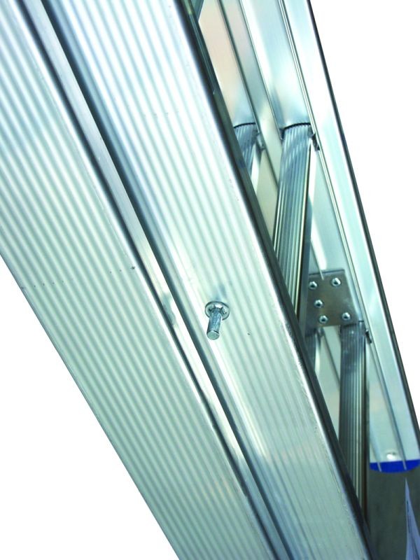 Der auf der Innenseite gestanzte Holm mit 2 Aussteifungsstegen, garantiert mit seiner verschweißten Sprossen-Holm-Verbindung, ein Maximum an Stabilität.