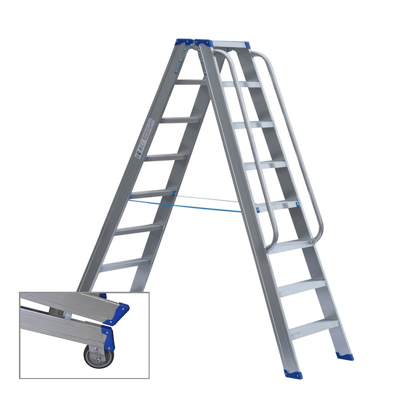 Extra tiefe, bequeme Trittstufen, rutschfest durch Riffelung, beidseitig je 3-fach mit dem Holm verschweißt.