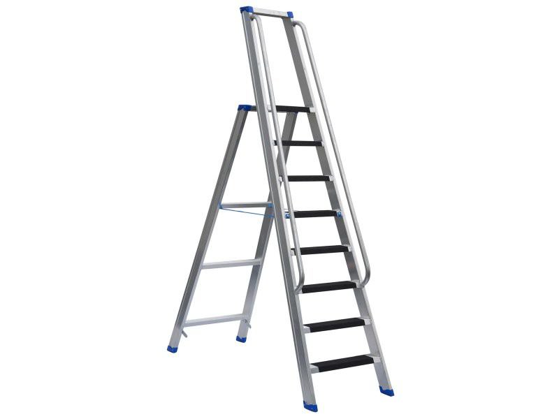 | Art-Nr. | Stufen incl. Plattform | Holmmaß mm | Gewicht kg | Breite unten m | Stand-Höhe m | Höhe aufgestellt m | Transport-Länge m | Listen-Preis € | Online-Preis € | |
